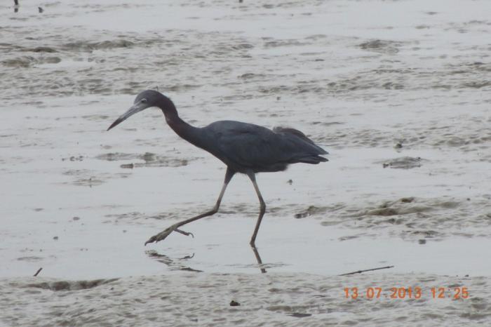 Garza caminando a la orilla del mar en Cataño, Puerto Rico.
